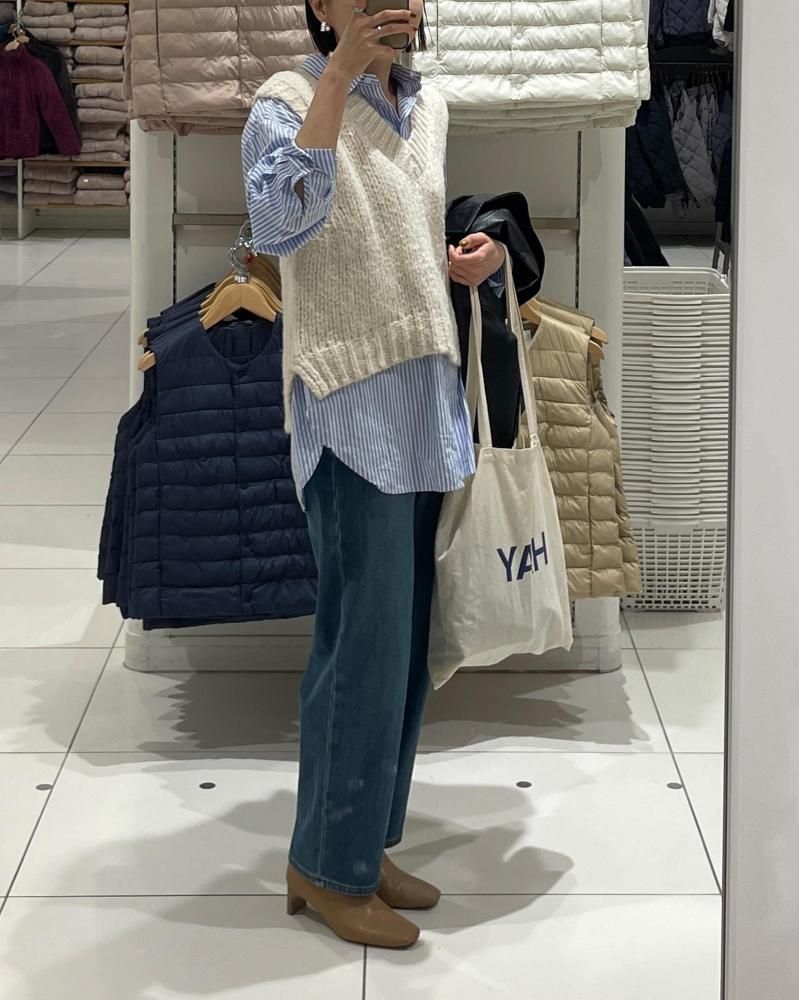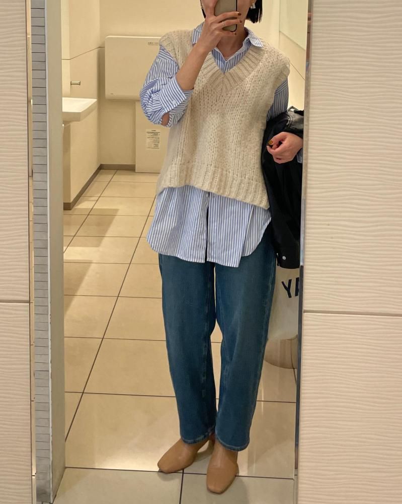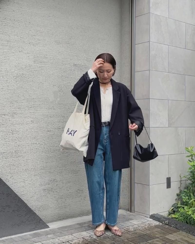 敢えてワンサイズアップしてゆったりめに履いても今っぽいシルエットになるのでオススメです。