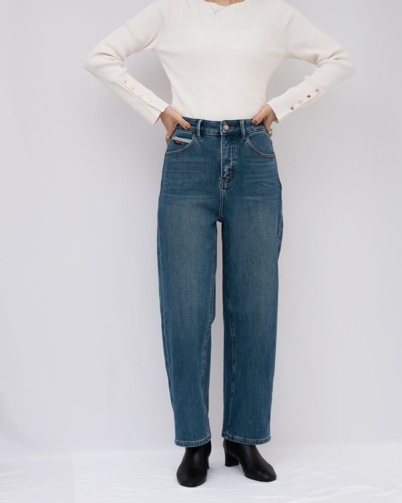 秋冬に暖かく履いて頂ける裏微起毛テーパードジーンズ