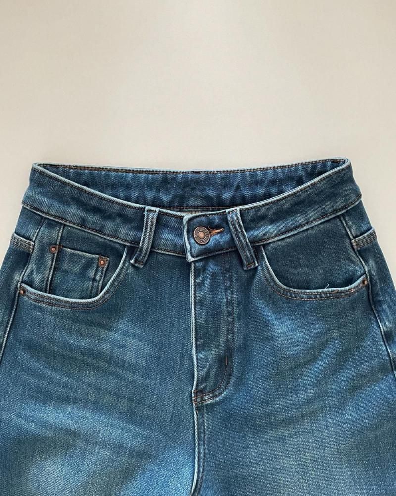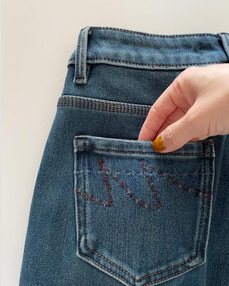 程よいフィット感で足のラインがきれいに見えるストレートジーンズ。