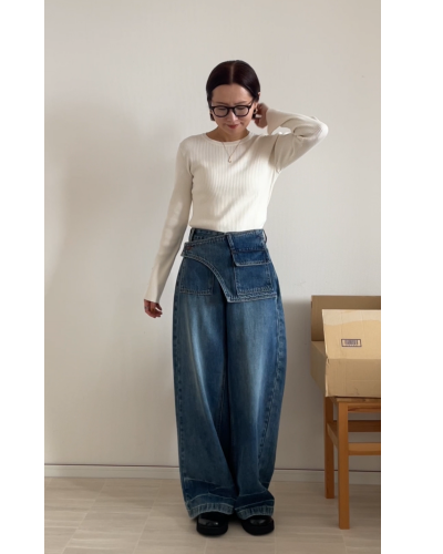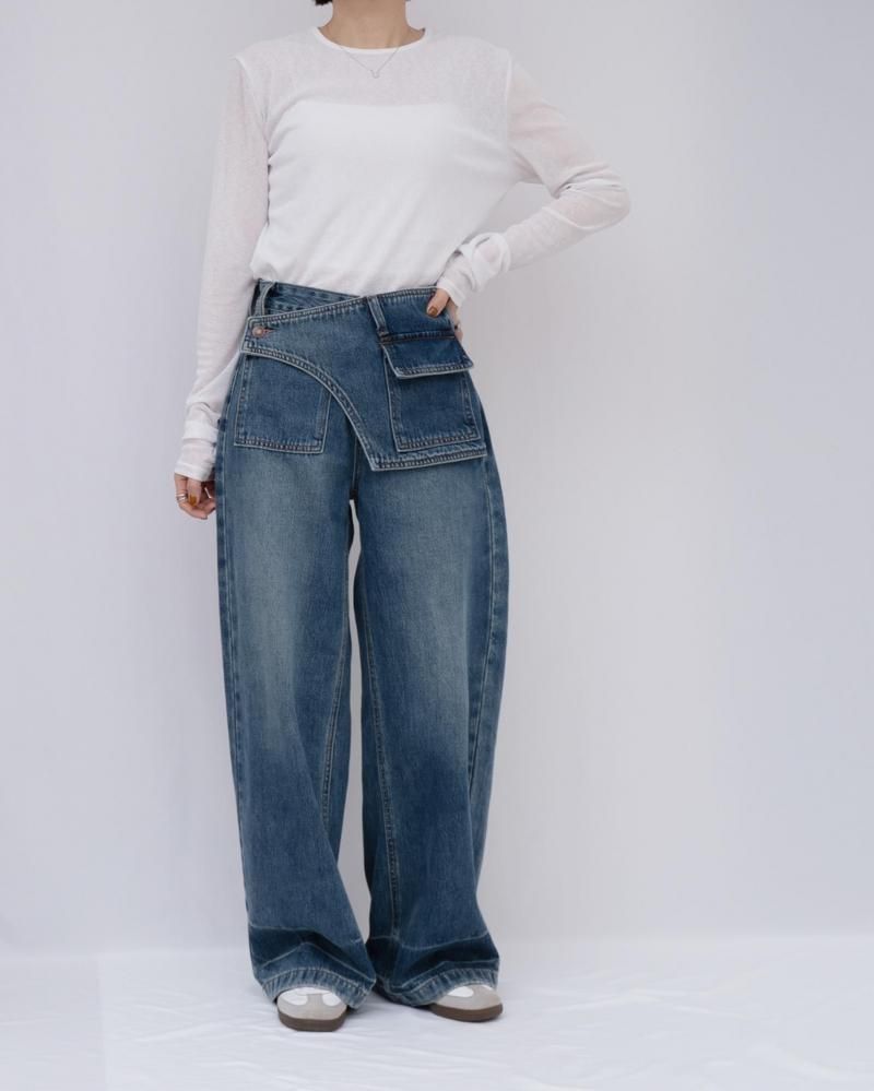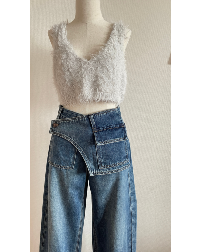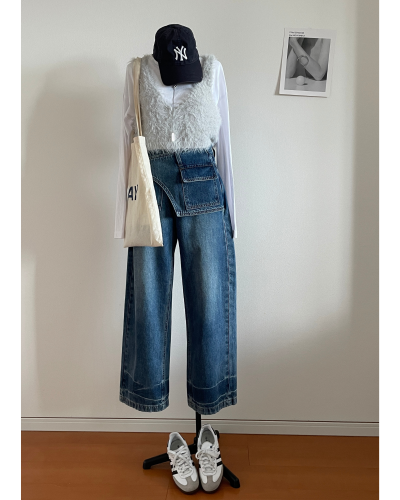 ジャストサイズのニットやカーディガン、クロップド丈のシャツやスウェットなど色んなトップスに合わせてコーディネートをお楽しみ頂けます♩